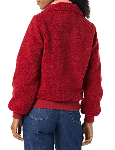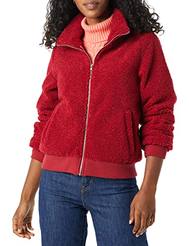 Amazon Essentials Teddy Faux Shearling Funnel Collar Jacket Giacca, Rosso Scuro, L