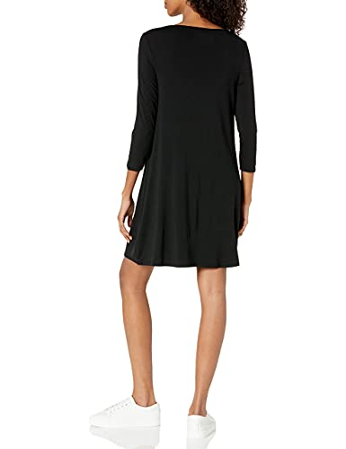 Amazon Essentials Vestiti con Scollo A Barca E Maniche A Tre Quarti (Taglie Forti Disponibili) Donna, Nero, XL Plus