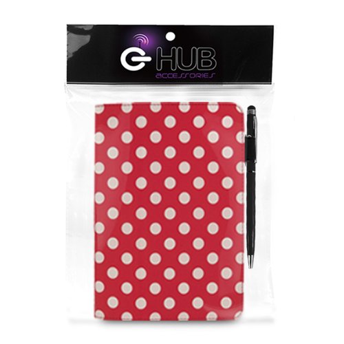 Amazon Kindle Fire HD Tablet Case - CUSTODIA con SUPPORTO integrato - in POLKA DOT - ROSSO con BIANCO POIS ( edizione limitata ) da G-HUB® - PropUp Stand Case COPERTURA con coperchio magnetico. Adatto Amazon Kindle Fire HD Tablet Kindle Fire HD - 7" (17 cm) dual band, doppia antenna Wi-Fi, schermo HD, audio Dolby, 16GB o 32GB modelli - Questo pacchetto comprise BONUS: G-HUB ProPen Stylus ( STILO )