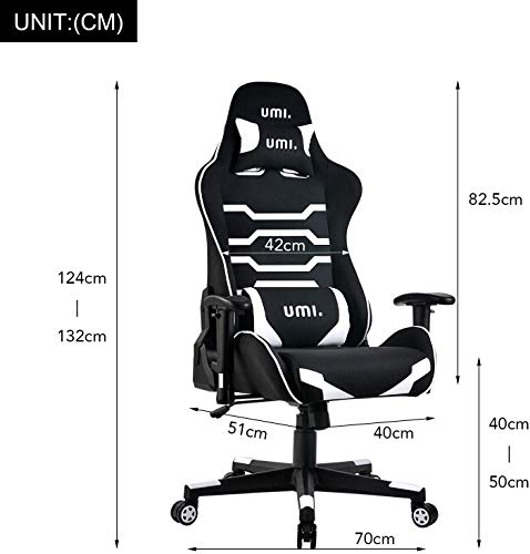 Umi. by Amazon - Sedia Gaming Ufficio da Scrivania Poltrona Ergonomica Sedie da Gaming Tessuto con Supporto Lombare e Poggiatesta, Colore Bianco