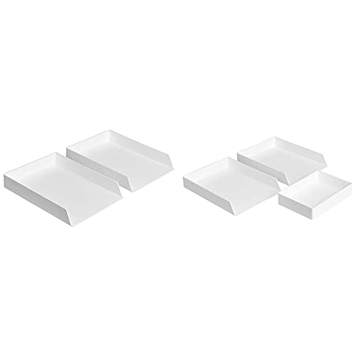 AmazonBasics Plastic Organizer - Ripiano portacorrispondenza, bianco - conf. da 2 & Plastic Organizer - Set di ripiano portacorrispondenza (conf. da 2) e vaschetta portaoggetti, colore: bianco