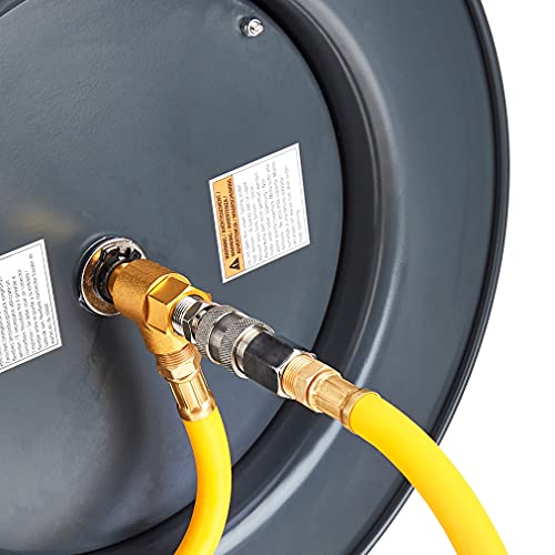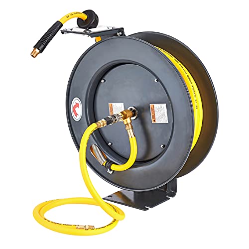 AmazonCommercial - Avvolgitubo per aria compressa, retrattile, in acciaio resistente, tubo a base di polimeri ibridi da 9,5 mm x 15 m, massimo 20 bar - Grigio, giallo, nero