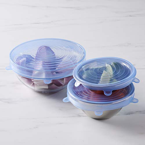 AmazonCommercial Set di 12 coperchi in silicone estensibili, compatibili con contenitori per alimenti di diverse dimensioni, rotondi (6 cm, 9 cm, 11.5 cm, 14 cm, 16 cm, 19.5 cm)