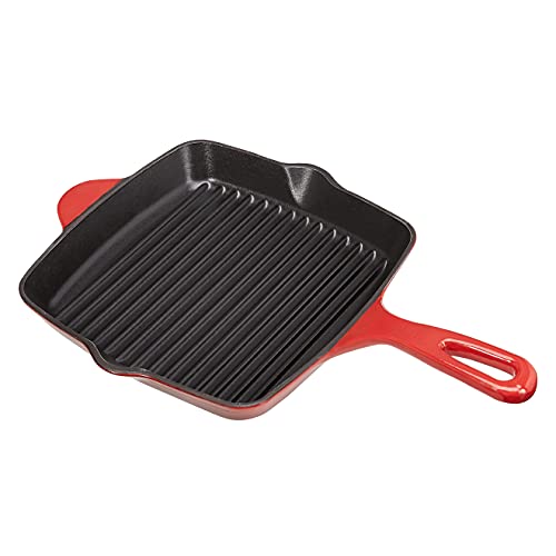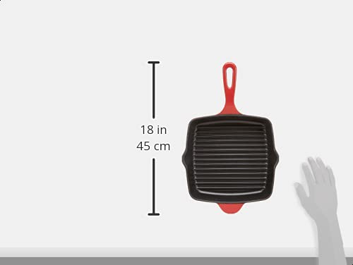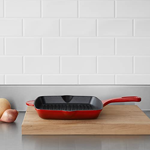 AmazonCommercial - Padella grill quadrata, in ghisa smaltata, 26 cm, rosso