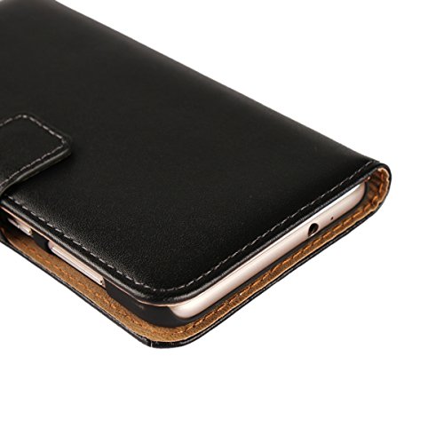 Ambaiyi Genuine Pelle Portafoglio Custodia Flip Case Cover per Huawei Y6 PRO 2017, Huawei Y6 PRO 2017 Cover, Nero