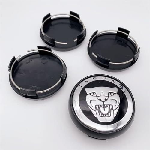 AMbAyZ 4 Pezzi da 65 mm coprimozzo per Auto, coprimozzo Centrale 3D, coprimozzo con Logo Automatico per Jaguar XF XJ-6 X-Type XE S-Type F-Pace F-Type XK8 XK XKR XFR,Black-1