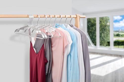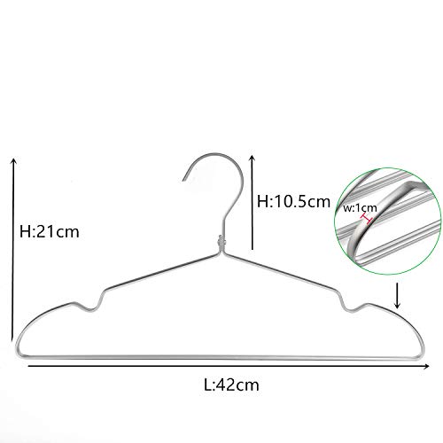 Amber Home 20 Pezzi 42cm di Appendiabiti in Ferro Alluminio, Argento Metallico Grucce per Completo Magliette Camicie Giacche Abiti Vestito, Scanalature Antiscivolo, Forte e Resistente
