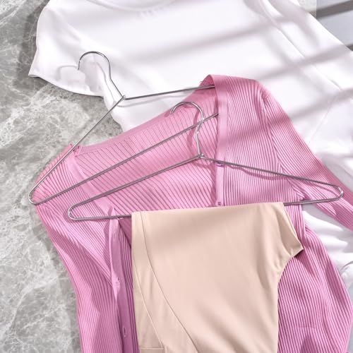 Resistente e durevole: realizzato in filo metallico resistente di 4,0 mm di diametro e cromato antiruggine lucido, extra forte di altri ganci in metallo con 3,0 o 3,2 mm per contenere vestiti più pesanti, come jeans, abiti, cappotti invernali, cappotti di lana e piumini. La struttura resistente può essere utilizzata a lungo e non facile da deformare.