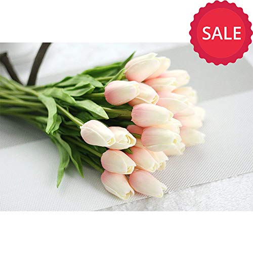 AmberH Fiori Artificiali - Tulipani Bouquet Fiori Artificiali di Fiori Artificiale PU Falso Fiore Composizione Fiori Artificiali per la Decorazione della Casa 10 pz (Bianca)