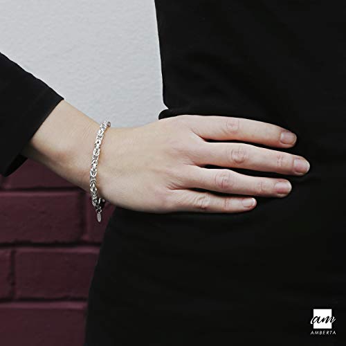 Amberta Bracciale Bizantino Unisex in Argento Sterling 925: 20 cm - Design Quadrato