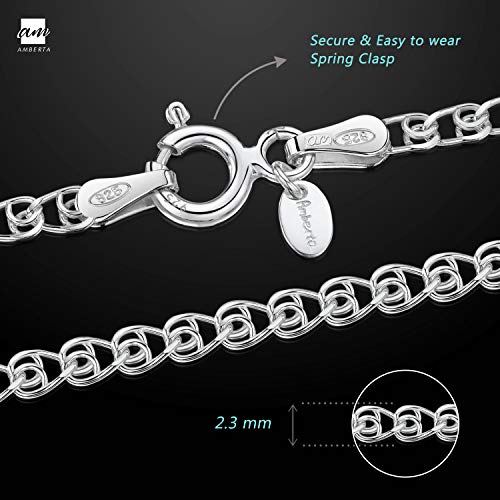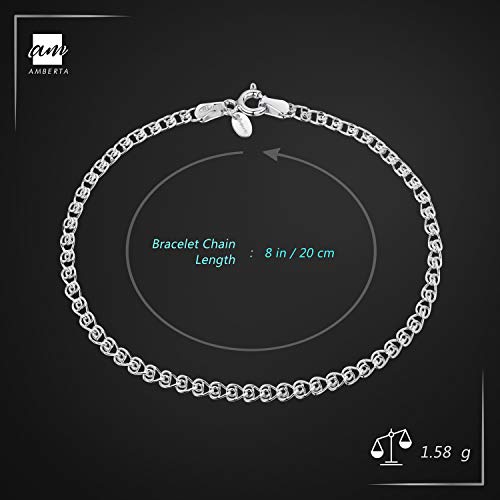 Amberta Bracciale da Donna in Argento Sterling 925 Lunghezza 20 cm: Maglia Cuore 2.3 mm