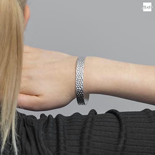 Amberta Bracciale Rigido da Donna in Argento Sterling 925: Bracciale Effetto Martellato Spesso in Argento