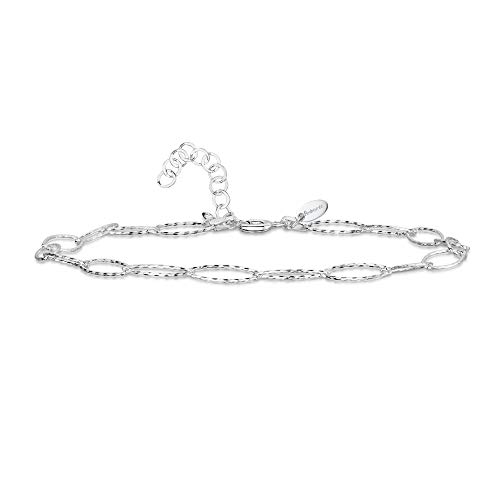 Amberta, cavigliera regolabile in argento sterling 925, flessibile, da 23 a 26 cm, Argento, colore: Oval Cable Chain, cod. BIA-S925-CHAIN-044-630-220-250