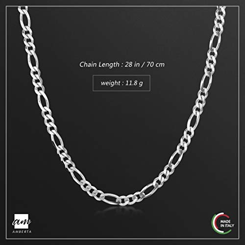 Amberta Collana da Uomo in Argento Sterling 925 Rodiato - Catena Modello Figaro 3.9 mm - Lunghezza: 70 cm