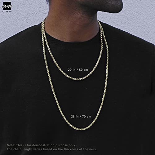 Amberta Collana Placcata Oro Giallo 18K su Argento Sterling 925 per Uomo - Maglia Corda - Spessore 4 mm - Lunghezza 50 cm