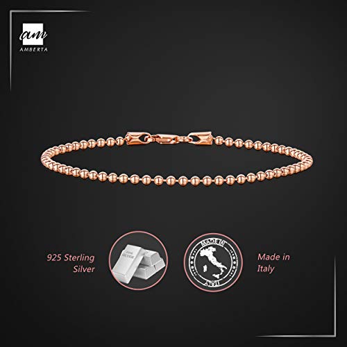 Amberta Gioielli - Bracciale - Catenina Argento Sterling 925 - Placcato Oro Rosa da 14k - Modello Sfere - Larghezza 2 mm - Lunghezza: 18 cm