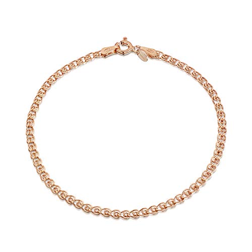Amberta Gioielli - Bracciale - Catenina Argento Sterling 925 - Placcato Oro Rosa da 14k - Modello Cuore - Larghezza 2.3 mm - Lunghezza: 19 cm