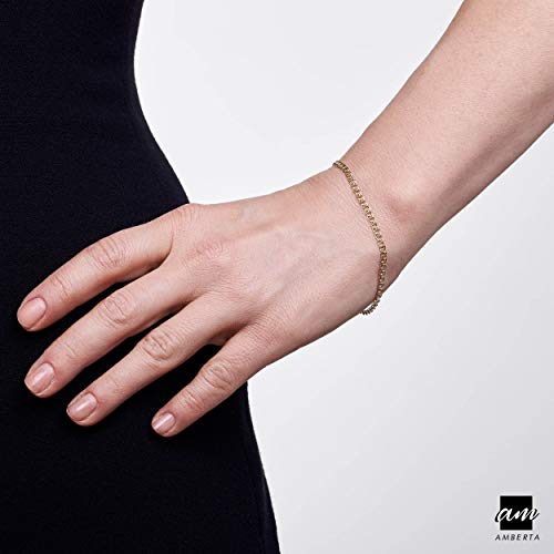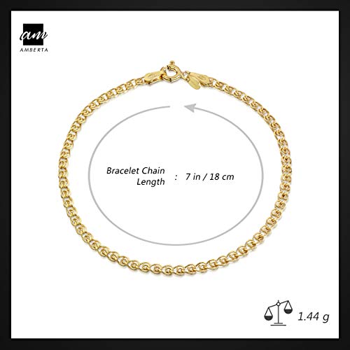 Amberta Gioielli - Bracciale - Catenina Argento Sterling 925 - Placcato Oro 18K - Modello Cuore - Larghezza 2.3 mm - Lunghezza: 18 cm
