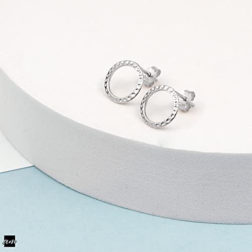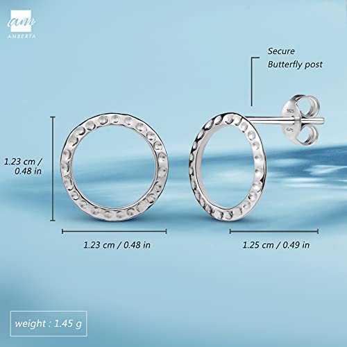 Amberta Orecchini Minimal da Donna in Argento Sterling 925: Cerchietto Martellato In Argento