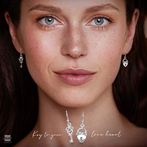 Amberta Orecchini Pendenti Chiave per Donna in Argento Sterling 925: Chiave e Lucchetto Asimmetrici