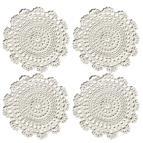 Ambielly Set di 4 centrini rotondi, all'uncinetto, in cotone.