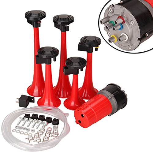 Ambienceo 5Pcs Set di compressore per trombe musicali a tromba d'aria 125DB 12V rosso per Van Car Boat