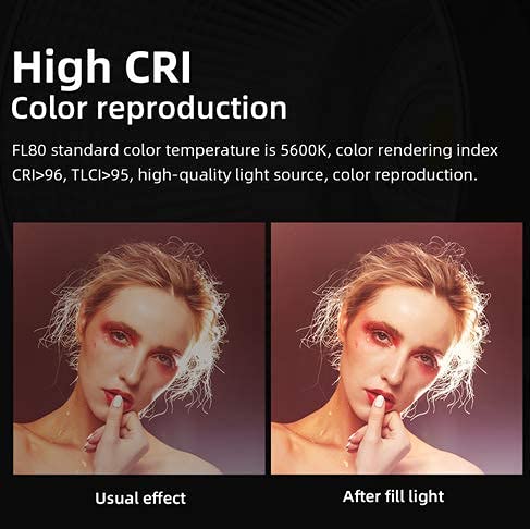 ✔✔AMBITFUL FL80 CRI ≥96 / TLCI ≥95 + con indici CRI e TLCI, adatto per la fotografia professionale. Fornisce luce naturale e una varietà di luce colorata per la registrazione.