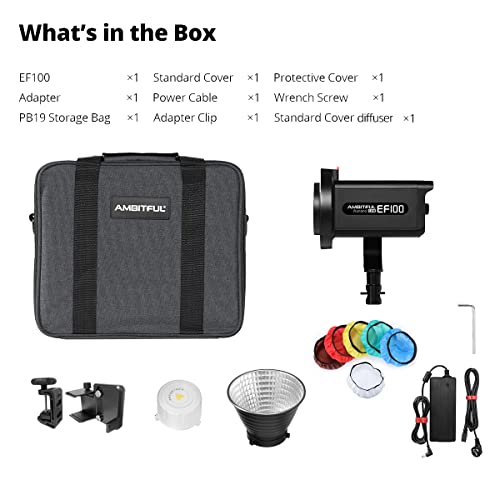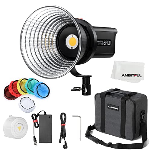 AMBITFUL Aurora EF100 100W 5600K COB LED Vidoe Light ,CRI 95+, TLCI 95+, Built-in 5-FX Effects Lux 35500(Standard Reflective)Support APP Control With Carry bag for Still Life Photography, Portrait