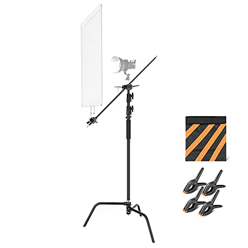Utilizzo flessibile: 2 maniglie in metallo con 4 diversi canali per una destrezza assoluta. Nota: solo supporto a C con braccio a braccio e 3 pulegge sono inclusi 1 sacchetto di sabbia e 4 clip e riflettore Sun Scrim (monolight, e altri dispositivi non sono inclusi)