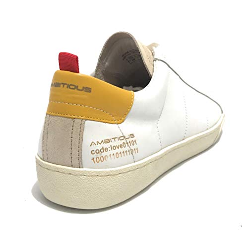 Ambitious Scarpa Uomo 8102 Sneakers in Pelle Bianco/Sabbia/Giallo US21AM07 40