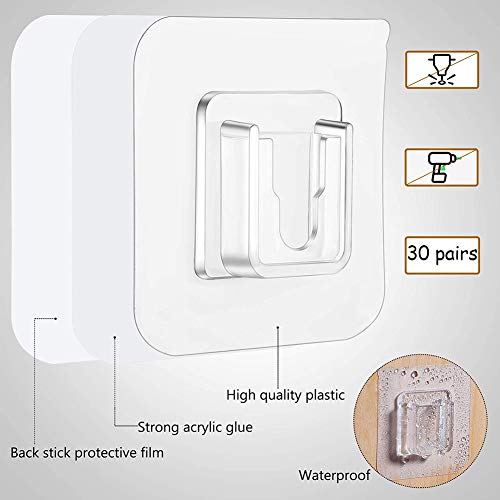 Ambolio 30 Pezzi,Ganci Autoadesivi Muro,Ganci da Parete Biadesivi Riutilizzabili,Ganci Da Parete Biadesivi,Ganci Adesivi Trasparenti,Ganci da Parete per Bagno Cucina.