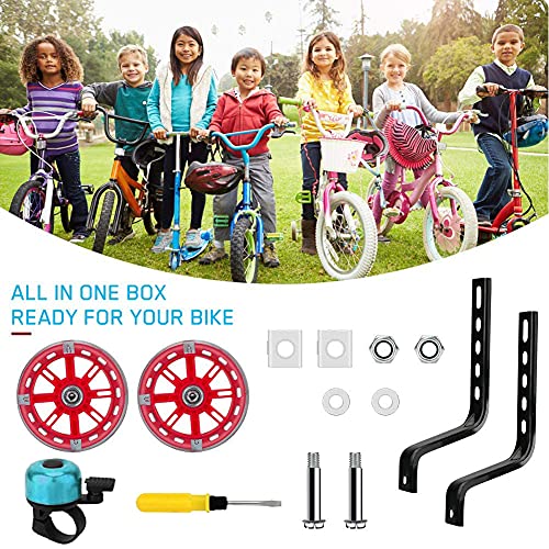 Ambolio Ruote di Supporto per Bambini,Stabilizzatori Bici,Ruota di Supporto per Bambini,Rotelle Regolabili per Bici,per Tutte Le Bici da 12-20 Pollici. (Rosso Lampeggiante)