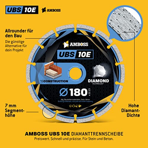 Amboss UBS 10E "Eco" - Disco diamantato per cemento, materiale da cantiere e pietra, diametro a scelta, foro: 22,2 mm;