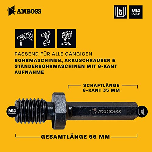 Amboss Werkzeuge Adattatore 6 spigoli su filettatura M14 / smerigliatrice angolare, piastra di supporto, spazzole metalliche con trapano/punta diamantata su esagono