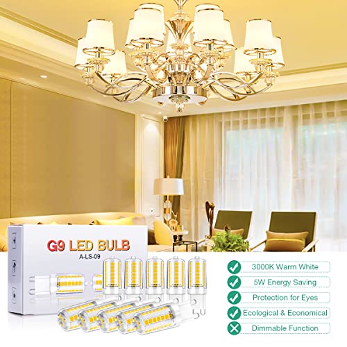 AMBOTHEpro G9 LED Bulbs, 5W, Equivalent to 40W Halogen Bulbs, Warm White 3000K, 500 LM, Non-Dimmable, No Flicker, Energy Saving LED Lamps for Home Ceiling, CRI>85, Pack of 10