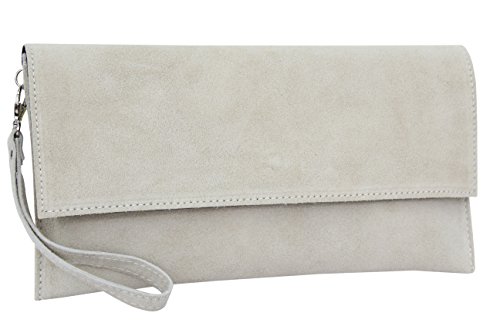AMBRA Moda WL811, borsa a mano da donna con cinghia da polso, in pelle scamosciata, Beige (Beige), One size