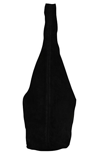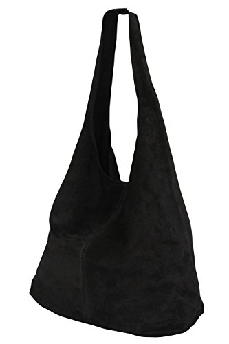 AMBRA Moda WL818, pochette, borsa a tracolla, shopper, da donna, in vera pelle, Nero (Nero ), X-Large