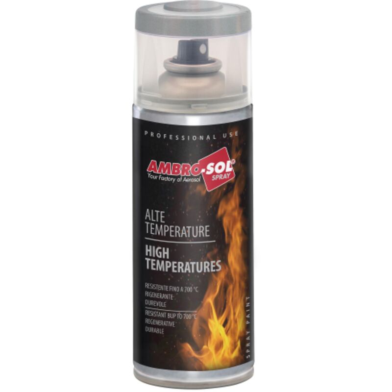 BOMBOLETTA SPRAY ALTE TEMPERATURE BIANCO ml. 400 Vernice spray alte temperature (smalto) di elevata qualità, a base di resine siliconiche modificate, che consente di rinnovare tutte le superfici normalmente soggette ad alte temperature. Resiste al calore fino a punte di 300°C-700°C (vedere Scheda Tecnica). Applicazione: parti di stufe, caldaie, forni, canne fumarie, barbecue, parafuoco, marmitte moto, ecc., non esposte a contatto diretto con la fiamma. Importante: per ottenere un risultato ottimale e duraturo è necessario che le parti verniciate vengano esposte, anche solo una volta, ad una temperatura di almeno 180°C, al di sotto della quale l'indurimento e l'adesione dello smalto risultano parziali. Pulire con cura la superficie prima dell'applicazione e agitare energicamente la bombola. Dopo l'uso spruzzare per 2/3 secondi con la bombola capovolta per evitare l'otturazione dell'erogatore. Scheda Tecnica