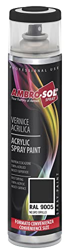 Ambro-Sol V600PAST5 Smalto Acrilico Multiuso, Vernice per Interni ed Esterni, Adatto per Qualsiasi Tipo di Materiale, Bomboletta Spray in Banda Stagnata Riciclabile 600 ml, Ral 9005 Nero Lucido
