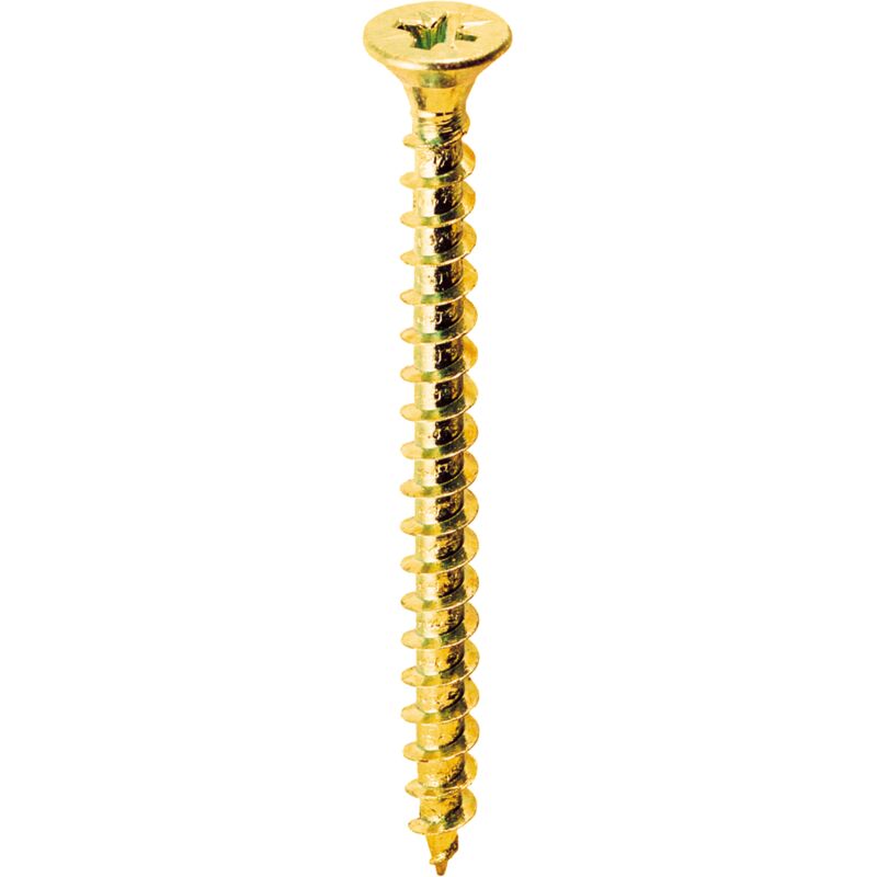 Mod. 05052 in acciaio ottonato per pannelli di legno truciolare conglomerato. Taglio a croce PZ. Testa svasata piana. Diametro 4.5 mm Lunghezza 50 mm