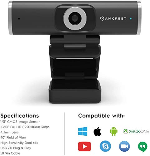 Amcrest Webcam 1080P con Microfono e Copertura per la Privacy, Webcam Webcam USB, Streaming HD per PC e Laptop con Microfono, Obiettivo grandangolare e Ampio sensore per Bassa luminosità (AWC195-B)
