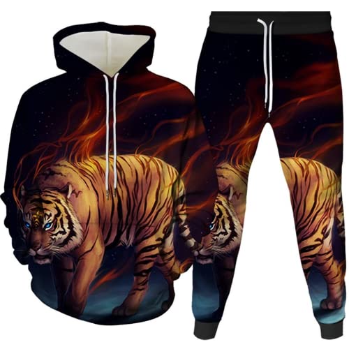 AMCYT Tuta da jogging tigre da uomo Maglione con cappuccio da uomo stampato in 3D in due pezzi maglione con cappuccio con stampa 3D animale + nero (Tiger7,M)