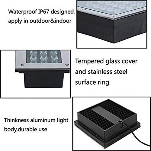 AMDHZ Faretti da Incasso for Esterni Piazza 9W Luce LED for percorsi sotterranei All'aperto Decorativo Luci da incasso nel terreno del giardino del giardino AC85-265V, IP67 impermeabile for Path Squar