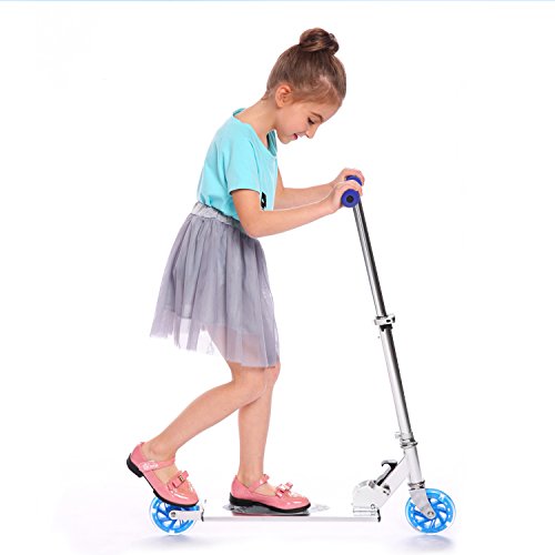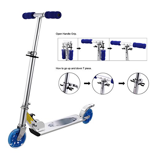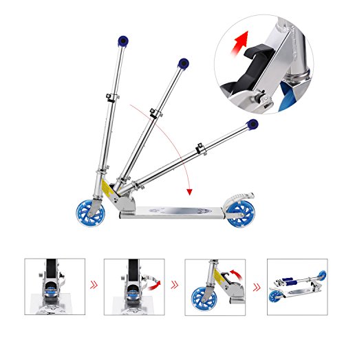 AMDirect Monopattino 2 Route Pieghevole Regolabile in Altezza Motorino con 2 Ruote LED per Bambini di 4-14 (Tipo2 Blu)