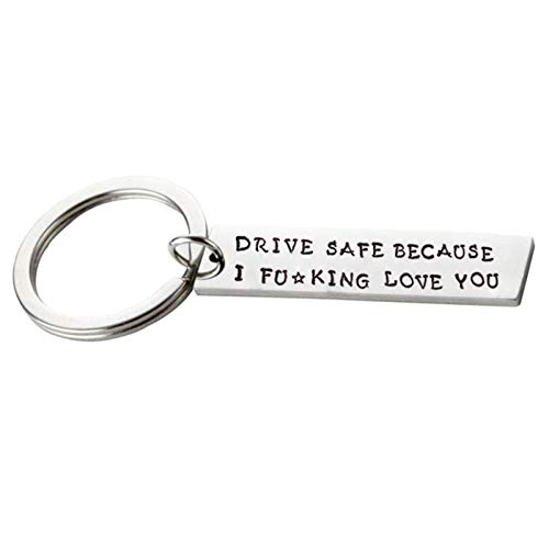 AMDXD Acciaio Inossidabile Portachiavi Donna Uomo Drive Safe Because I fuxxing Love You Argento Portachiavi Etichetta