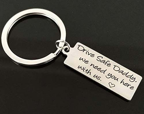 AMDXD Acciaio Inossidabile Uomo Portachiavi Acciaio Drive Safe Daddy,We Need You Here with us Argento Portachiavi con Etichetta