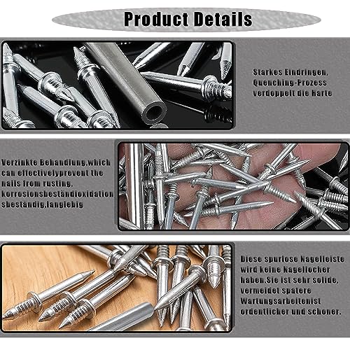 【Chiodi di alta qualità】 I chiodi senza saldatura sono realizzati in materiale di acciaio al carbonio duro, zincato sulla superficie, stampaggio in un unico pezzo, che può prevenire la ruggine, elevata resistenza, forte potere penetrante, mantiene la forma, non facile da piegare durante l'uso.