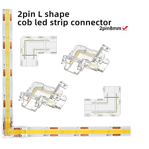 Amefil Connettore COB LED da 10 pezzi Connettore senza cuciture a forma di L a 90 gradi Connettore angolare 2pin8mm FOB RGB CCT Collegamento della luce del nastro