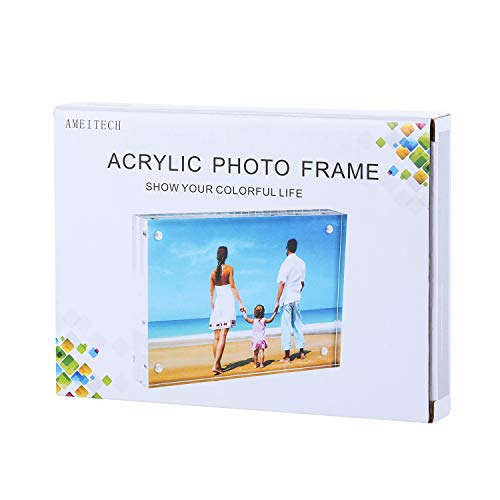 AMEITECH Cornice per Foto in Acrilico 13x18 cm, cornici magnetiche, Supporto per Spessore 10 + 10MM in scrivania o Tavolo, Trasparente - Confezione da 2