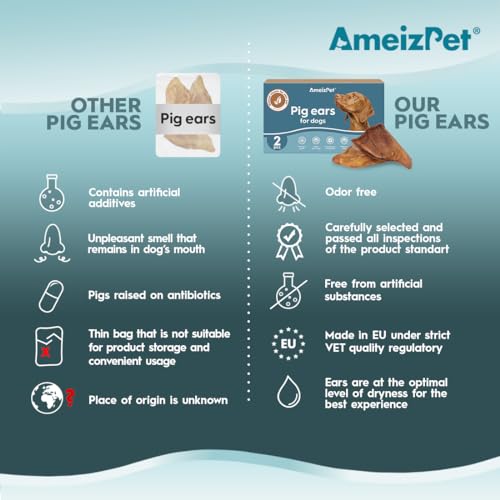 AmeizPet Orecchie Di Maiale Essiccate Per Cani, Masticativi Naturali Per Cani, Lunga Durata Croccanti Orecchie di Maiale, Dolcetto Per Cani 2 Pezzi